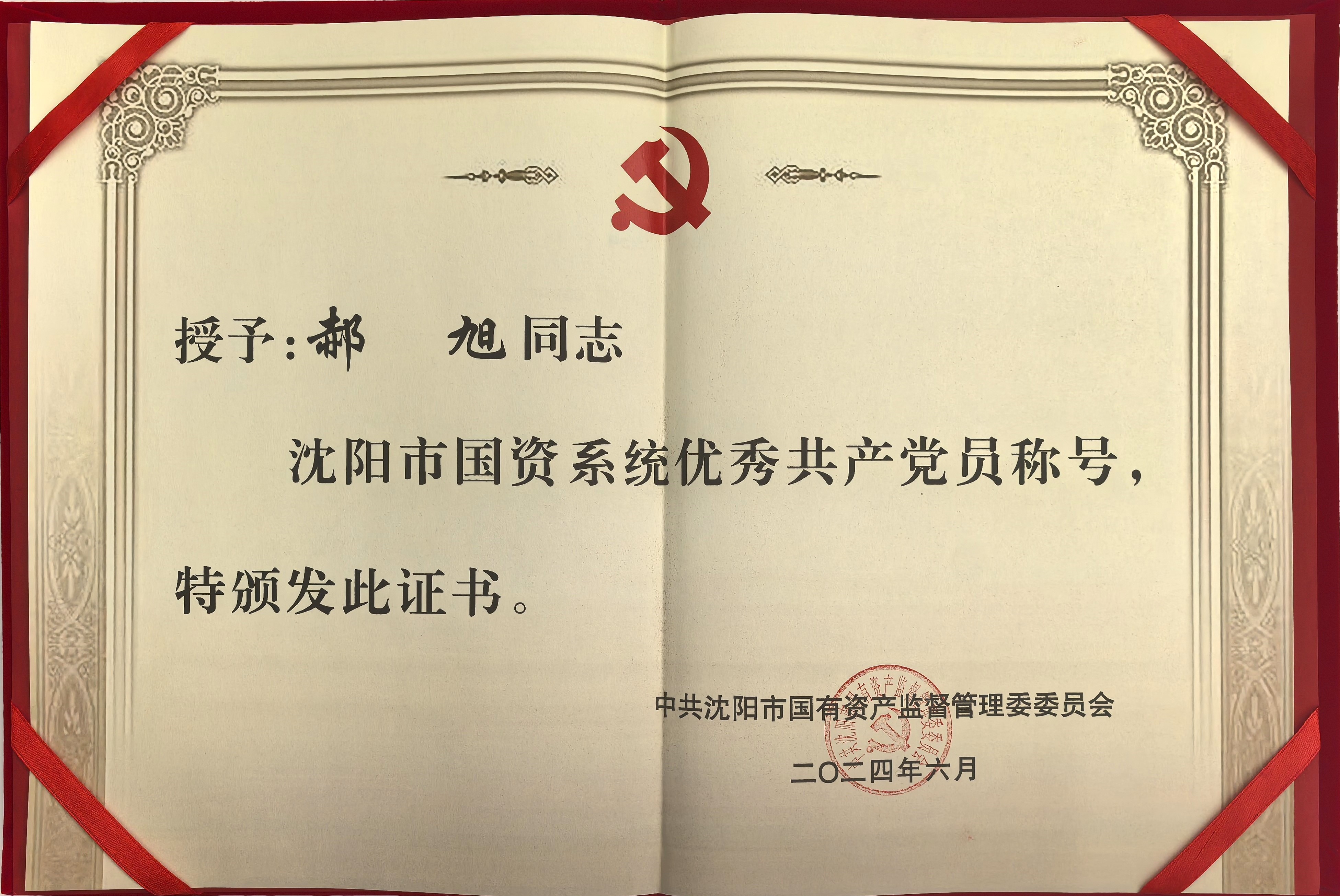 7月11日,沈陽市國資委系統召開“兩優一先”表彰大會,對榮獲優秀共產黨員、優秀黨務工作者的個人和先進基層黨組織進行表彰。公司優裝備郝旭被授予“沈陽市國資系統優秀共產黨員”榮譽稱號;成套設備黨總支被授予“先進基層黨組織”榮譽稱號。